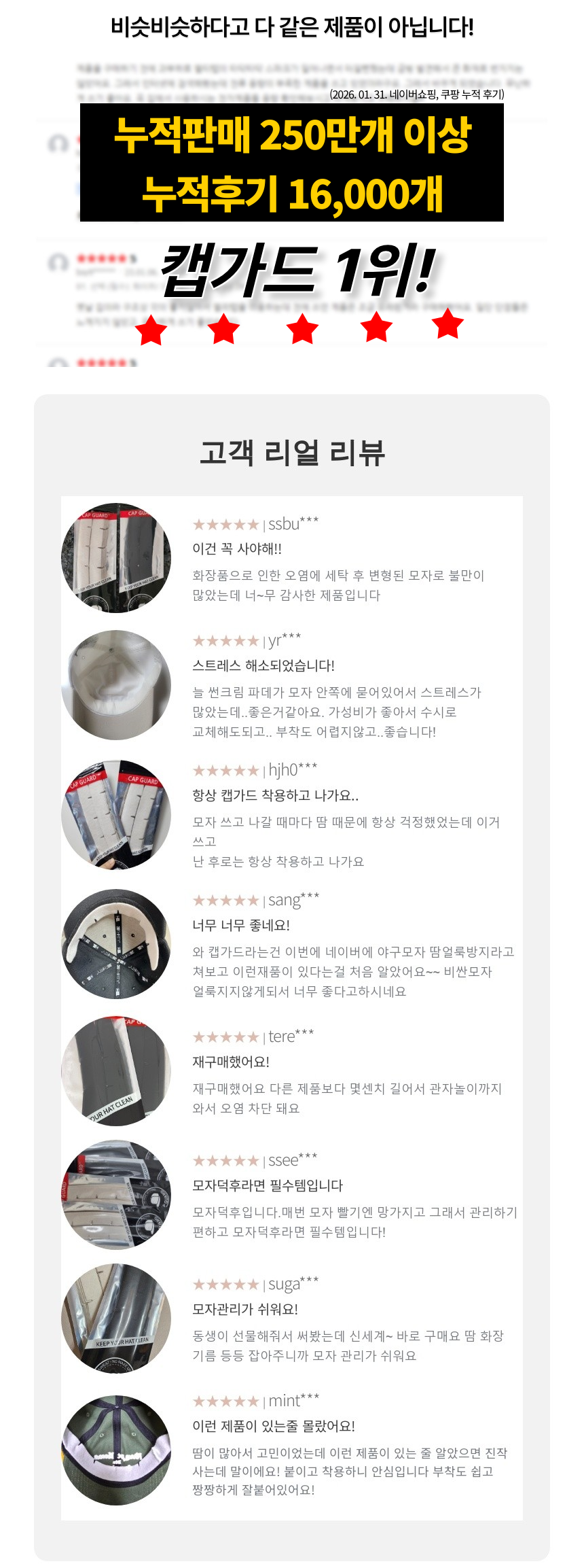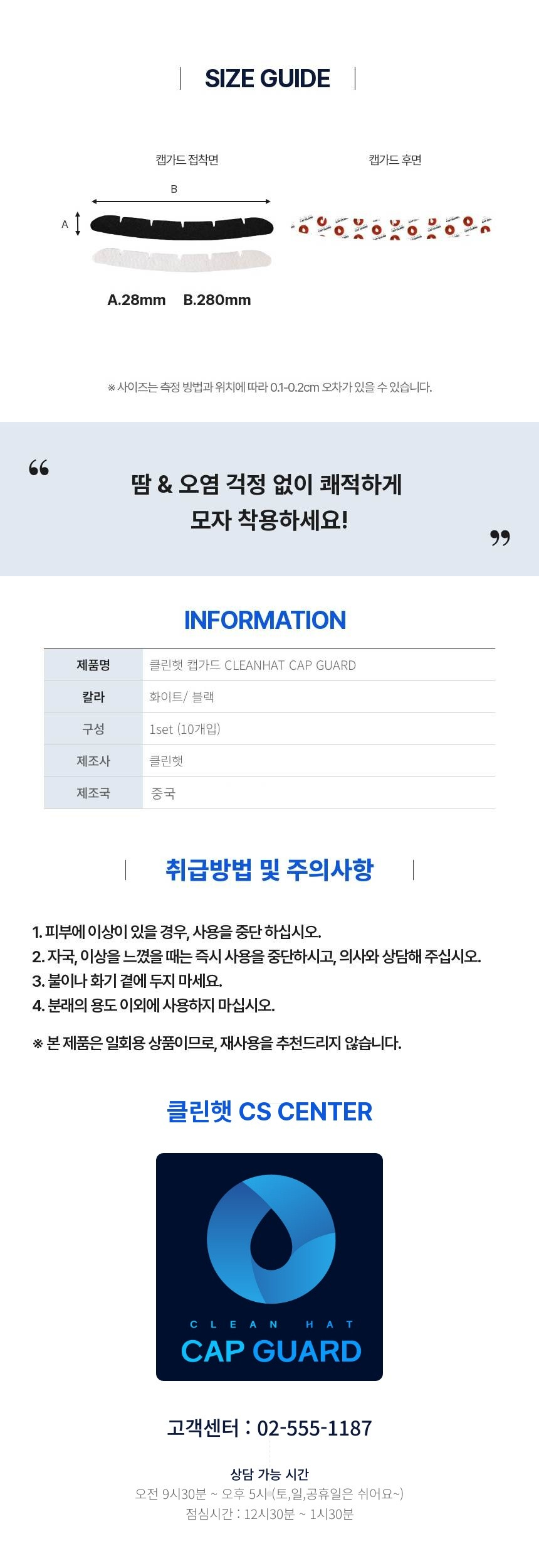 땀, 화장품, 썬크림으로 부터 모자를 보호하는 캡가드!!